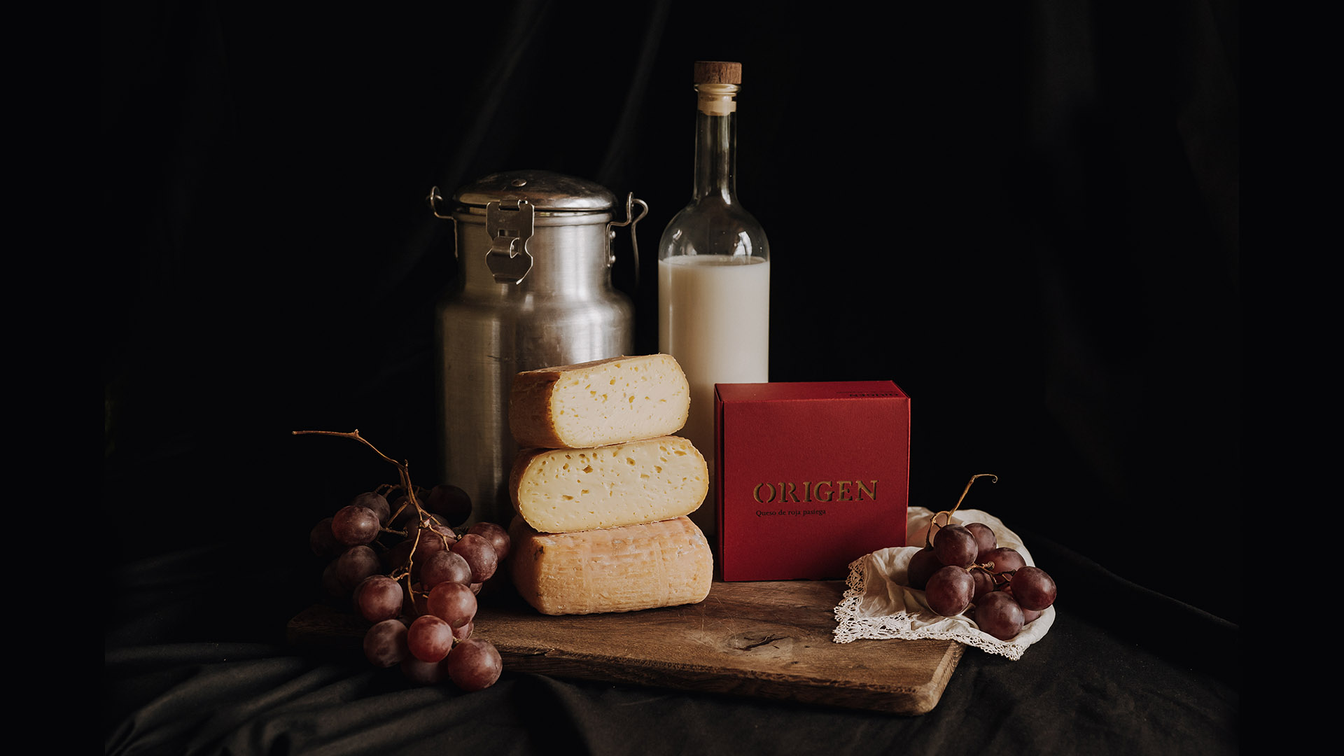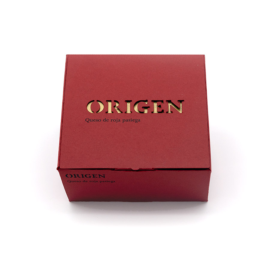 El encargo con la línea ORIGEN fue muy claro: debía resaltarse ese carácter exclusivo, para albergar productos con tiradas muy limitadas y de una calidad superior. Para ello optamos por la combinación de color burdeos + oro y unos estuches sencillos pero cuidados, combinando troquel con pocos elementos impresos, y tratando de que el aspecto de todo el packaging (2 formatos para quesos y una faja para mantequilla) oscilara entre lo tradicional y lo sofisticado.